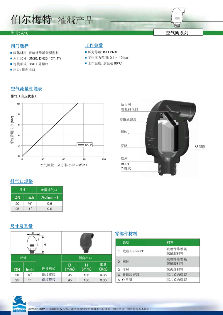伯爾梅特A10自動微量排氣閥介紹: