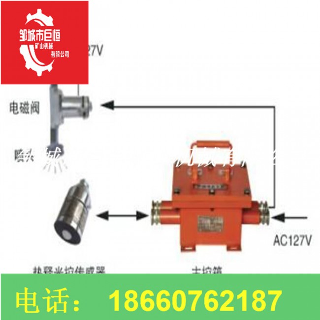 裝置有ZP127-Z礦用自動(dòng)灑水降塵裝置主控器、煙霧傳感器、振動(dòng)+聲控(可選)、電動(dòng)閥、試驗(yàn)開(kāi)關(guān)、快速連接構(gòu)成、防塵水幕等組成。