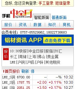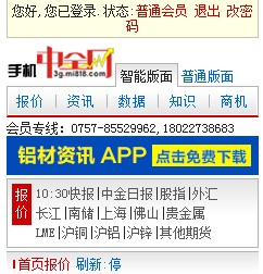 1、打開手機中金網(wǎng)首頁 3g.mi818.com 或 3g.metalsinfo.com