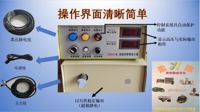 盈暉靜電發(fā)生器穩(wěn)定性好,輸出無級調(diào)節(jié),設(shè)備可長時(shí)間連續(xù)運(yùn)行,適用于DISK圓盤型自動靜電水性、油性噴漆設(shè)備使用。(YH120KV干式和YH150KV油式兩款供貴公司選用)