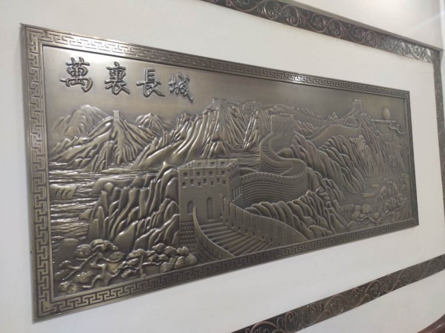 純銅純鋁雕刻屏風(fēng)背景墻,銅浮雕壁畫(huà)以其特有的金屬性質(zhì),解決了木制品的缺點(diǎn),能夠經(jīng)受戶(hù)外的風(fēng)吹雨淋而不變質(zhì),能夠有效的防火防潮防蟲(chóng)蛀,好的耐候性,10年不變色。純銅雕刻屏風(fēng)背景墻,銅鋁浮雕壁畫(huà)經(jīng)過(guò)精雕細(xì)琢,既呈現(xiàn)出現(xiàn)代氣息,又不失古典韻味,融中西文化于一體,呈現(xiàn)出古典與現(xiàn)代的美感。